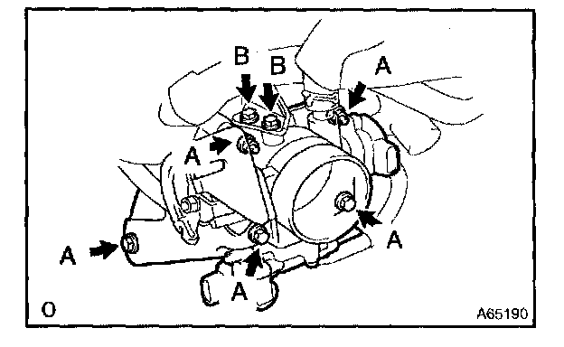 d. Install the throttle body with 3 bolts and 2 nuts. (Transaxle A/T)