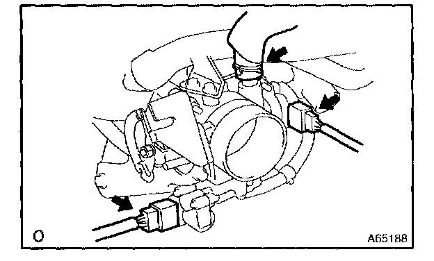 b. Disconnect a throttle body ISC valve assy connector.