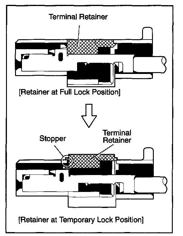 Push the terminal retainer down to the temporary lock position.