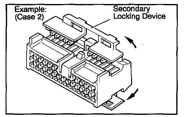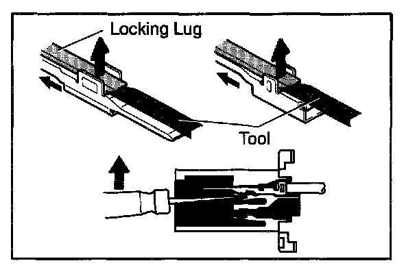 a. Locking device must be disengaged before the terminal locking clip can be released and the terminal removed from the connector.