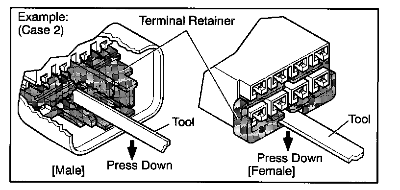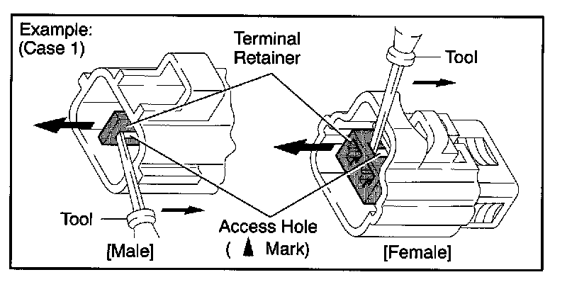 Type which cannot be pulled as far as Power Lock insert the tool straight into the access hole of terminal retainer as shown.