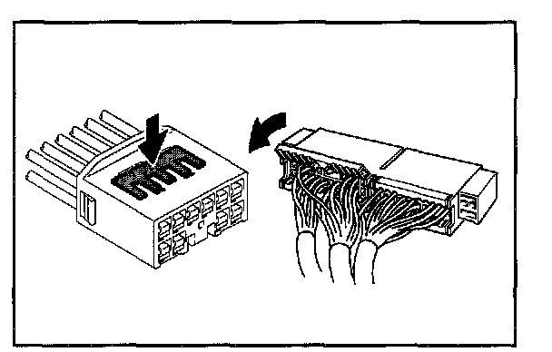 Insert the special tool into the terminal retainer access hole (Mark) and pull the terminal retainer up to the temporary lock position.