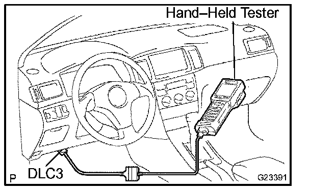 1. Connect the OBD II scan tool or hand-held tester to the DLC3.