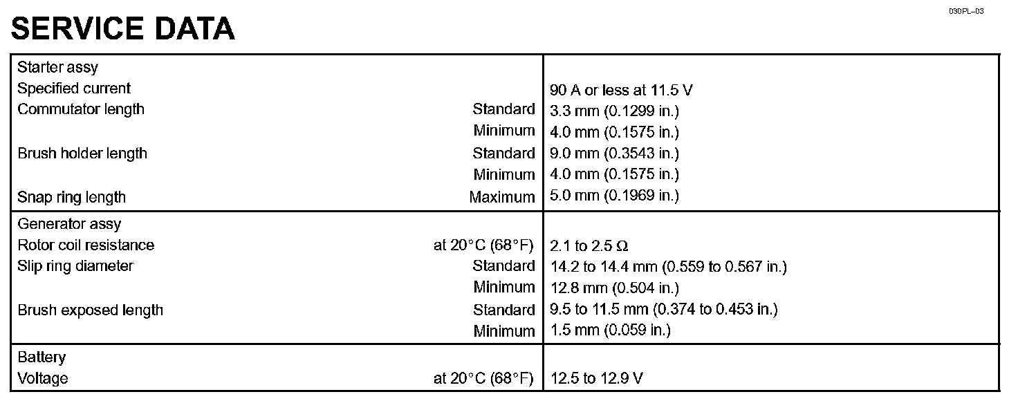 Starting & Charging - Service Data: