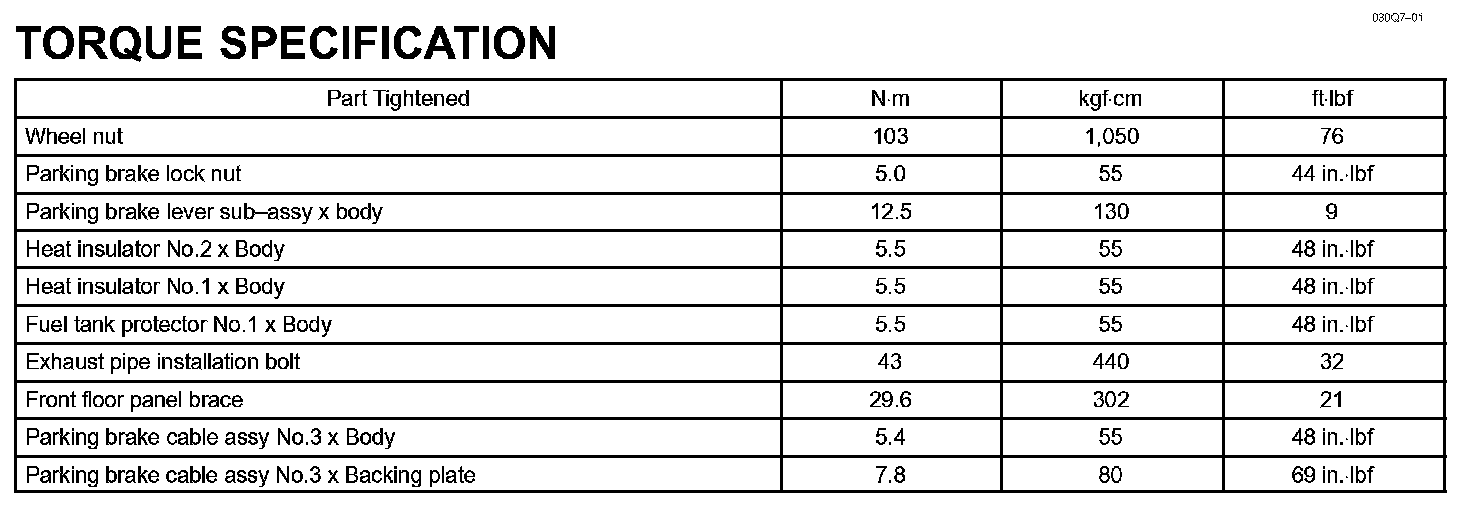 Parking Brake - Torque Specification: