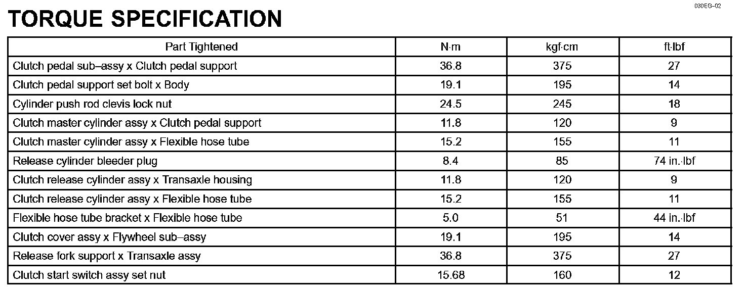 Clutch - Torque Specification: