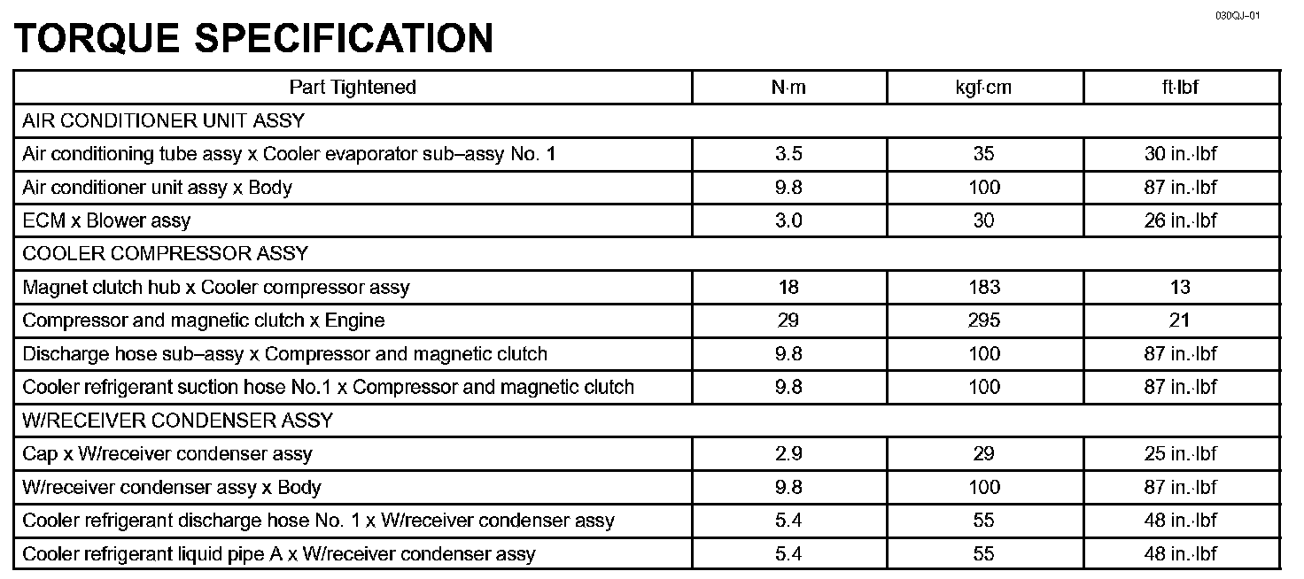 Heater & Air Conditioner - Torque Specification: