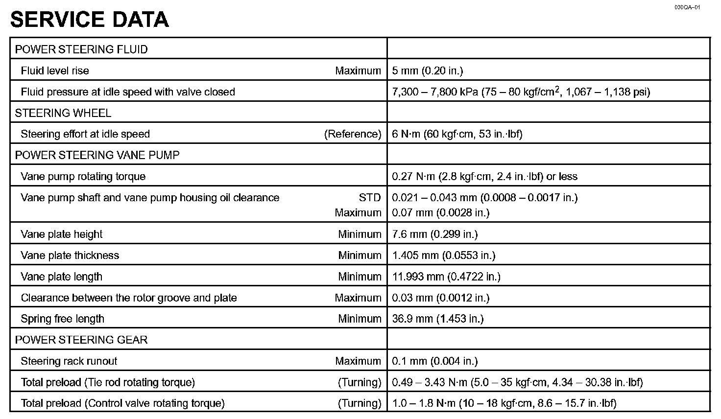 Power Steering - Service Data: