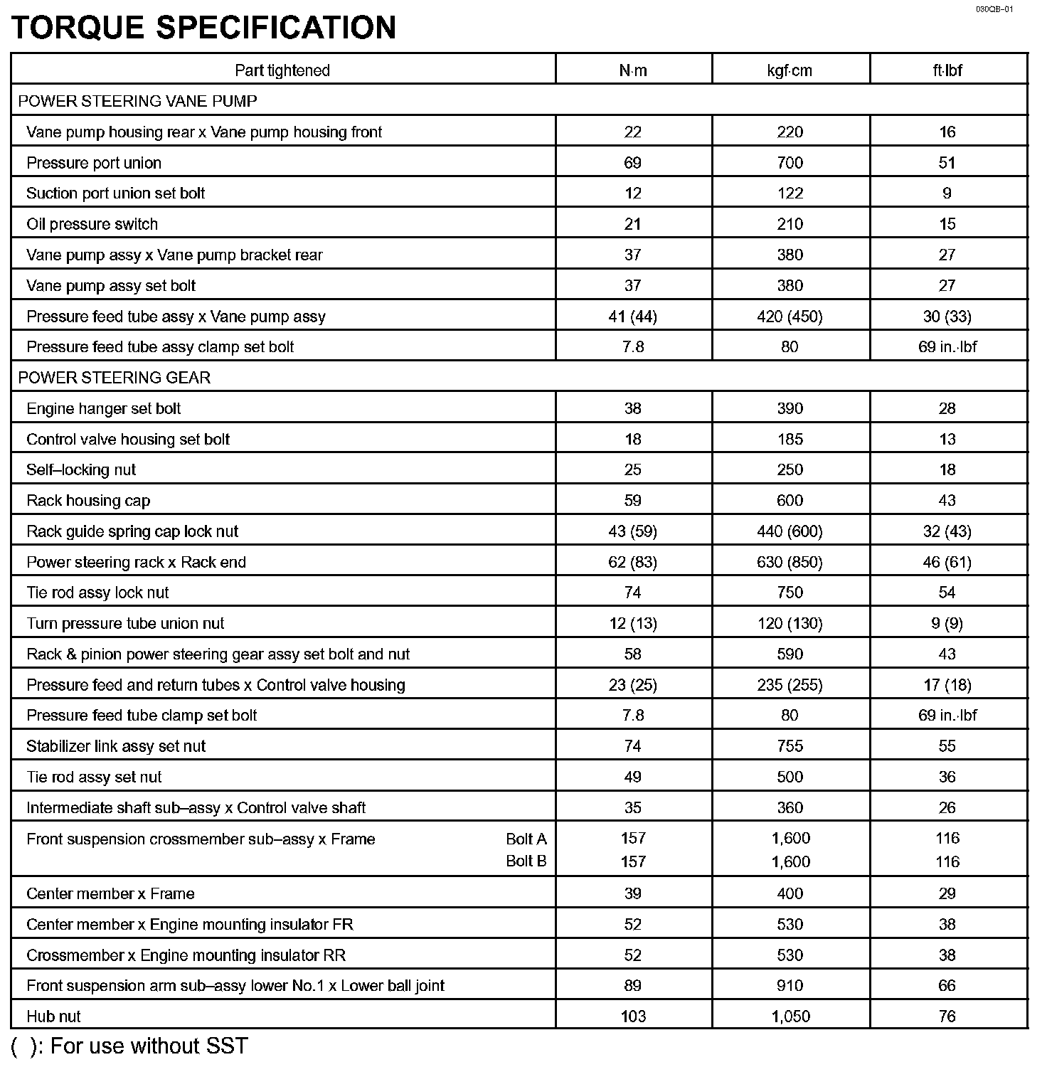 Power Steering - Torque Specification: