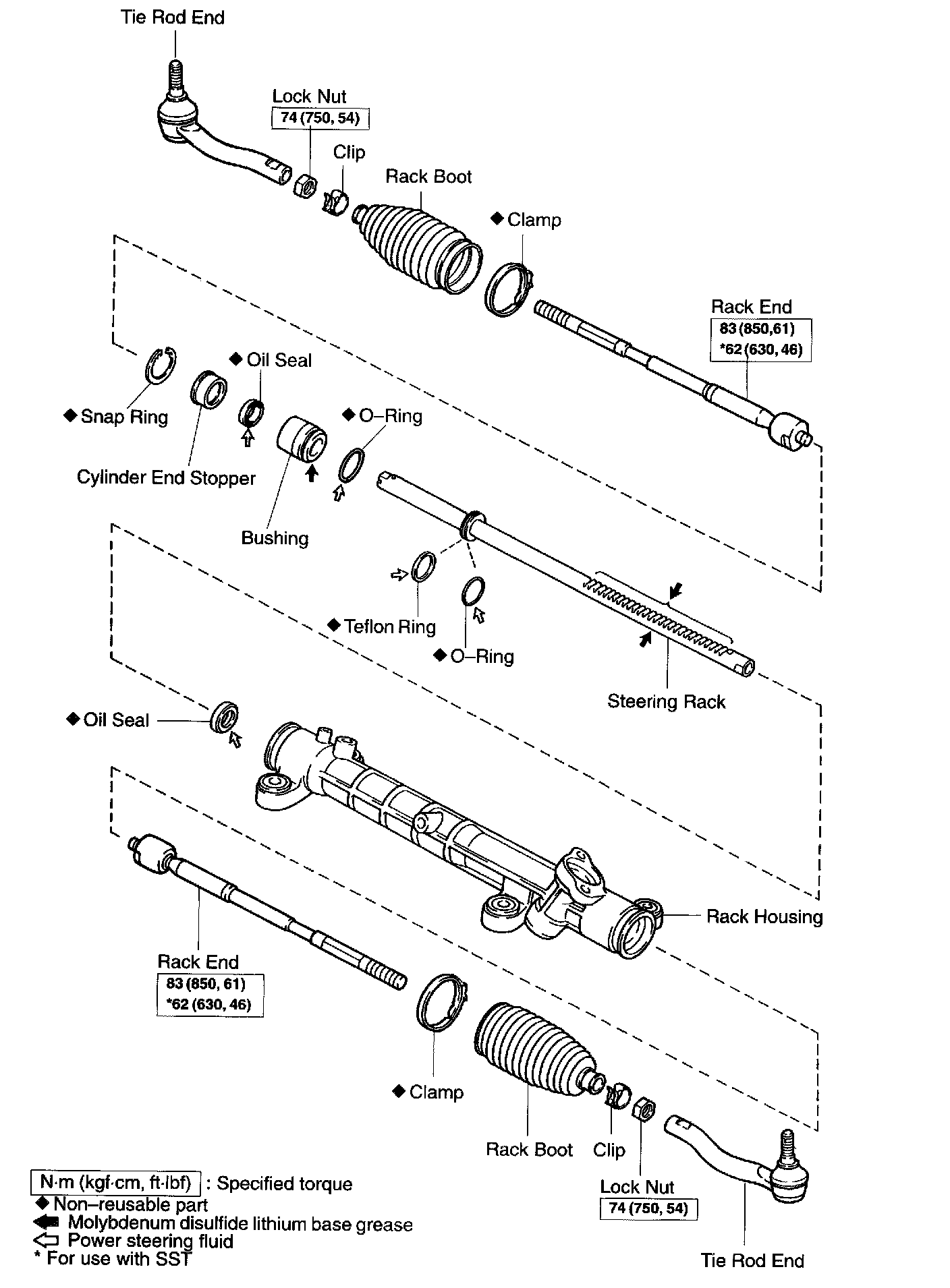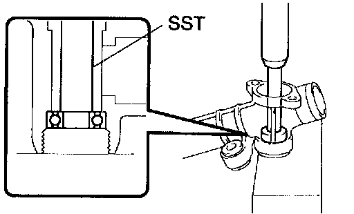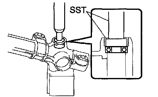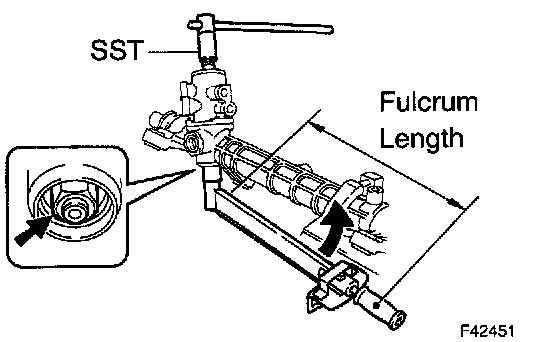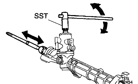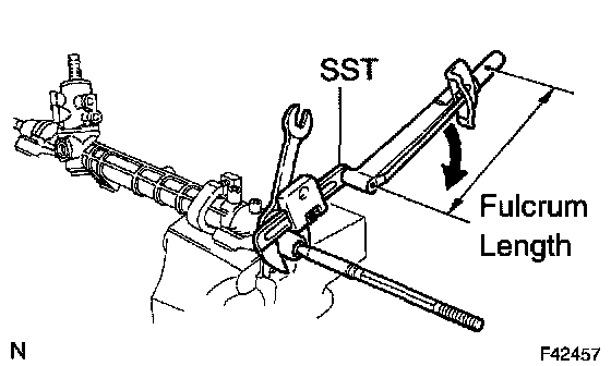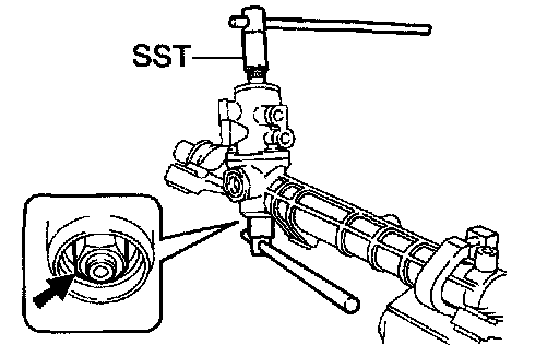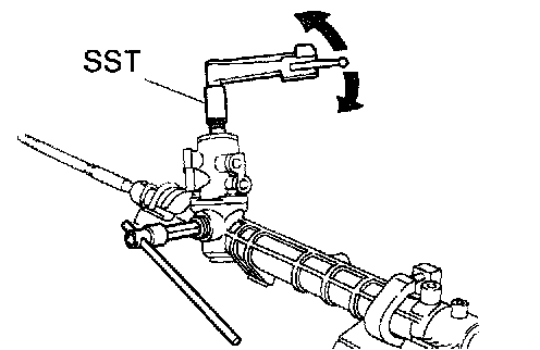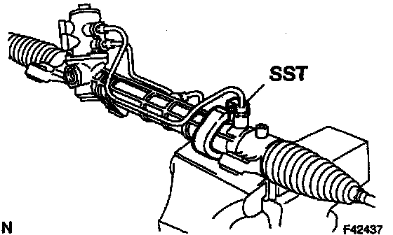 a. Using a spanner, hold the steering rack steadily and using SST, remove the rack end.