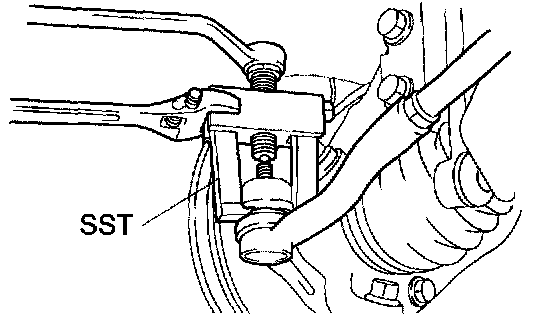 b. Using SST, disconnect tie rod end sub-assy LH from the steering knuckle.