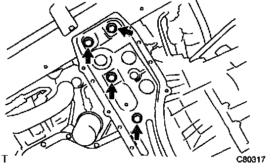c. Remove the bolt and 3 nuts, disconnect the engine mounting insulator RR from the crossmember.