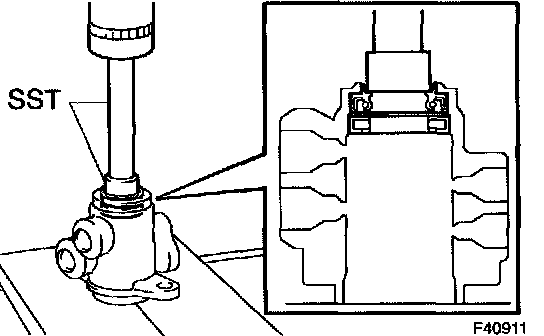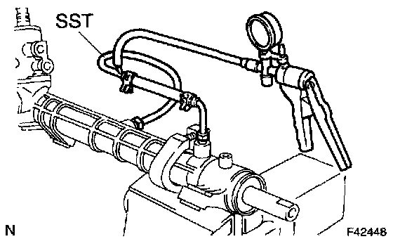 b. Using SST, install the left turn pressure tube to the steering gear assy.