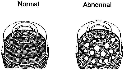 h. Check for foaming or emulsification. Especially, if the system has to be bled twice because of foaming or emulsification, check for fluid leaks in the system.