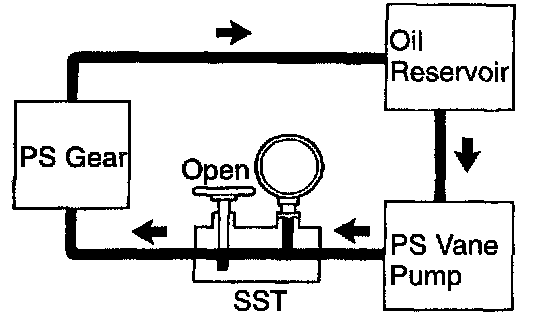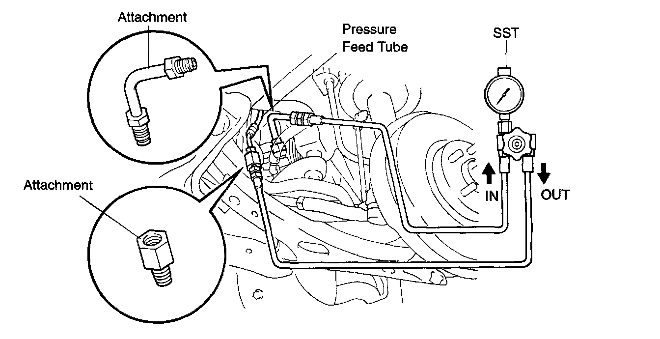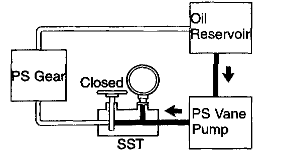 f. With the engine idling, close the valve of the SST and observe the reading on the SST.