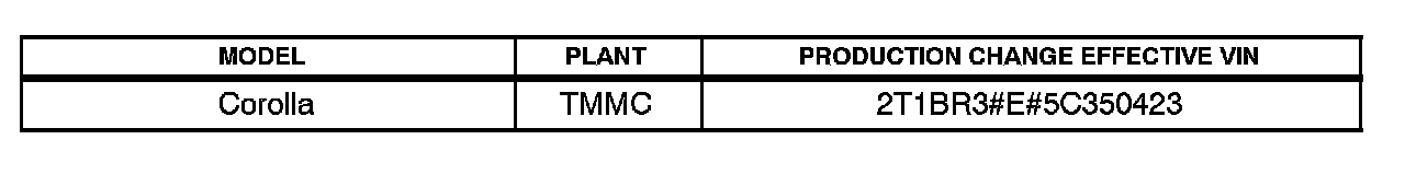 ^ 2003 - 2005 model year Corolla (TMMC) vehicles produced BEFORE the Production Change Effective VIN shown below.