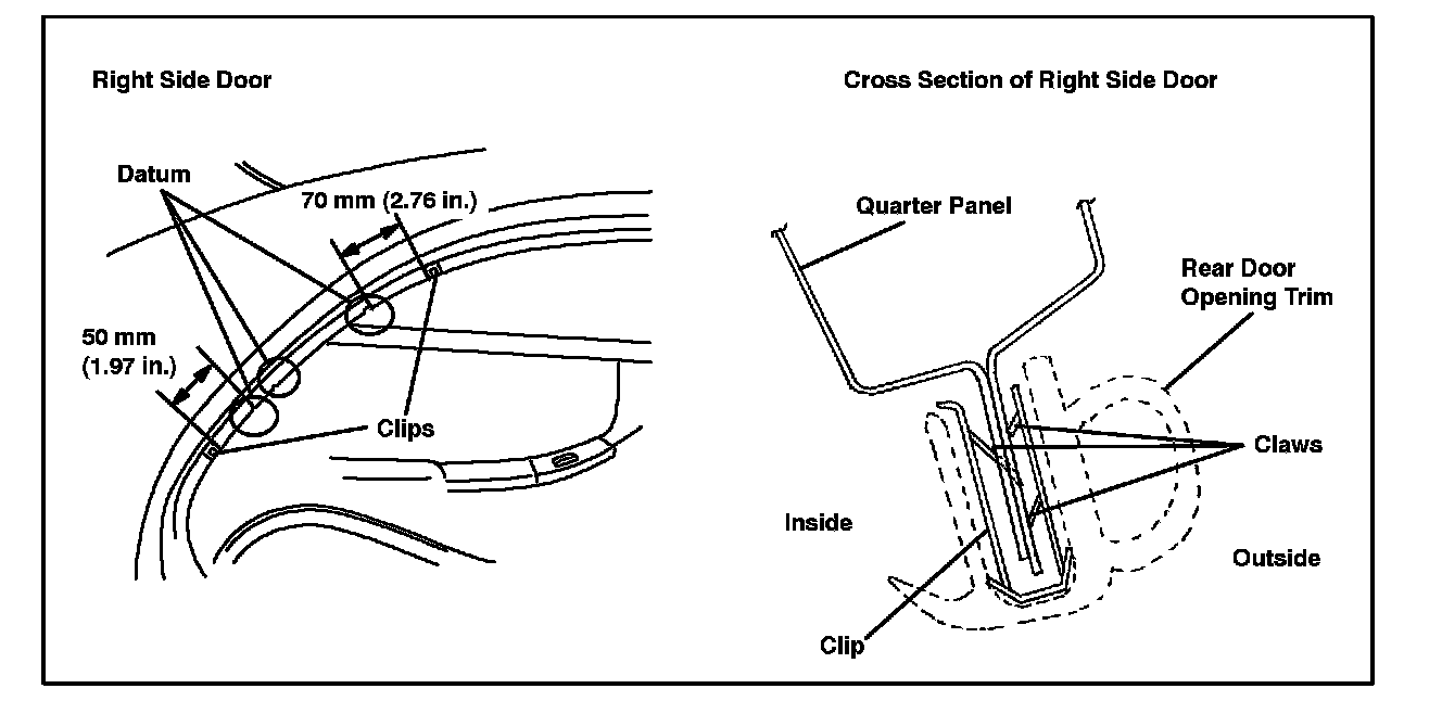 3. Reinstall the rear door opening weatherstrip onto the new clips.