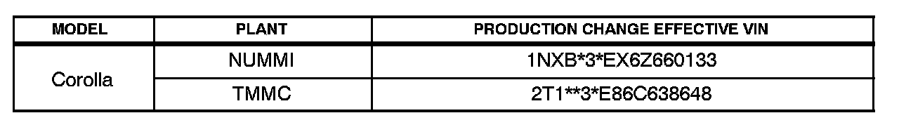 ^ 2004 - 2006 model year Corolla vehicles produced BEFORE the Production Change Effective VINs shown below.