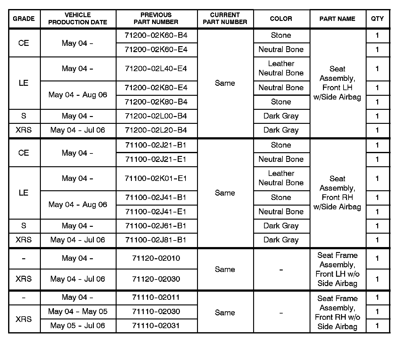 ^ 2004 or 2005 model year Corolla Repair Manual, Vehicle Interior - Seat - "Front Seat: Overhaul".