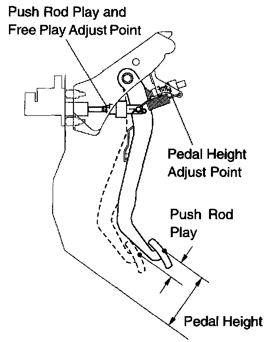 Push rod play at pedal top: 1.0 - 5.0 mm (0.039 - 0.197 inch)