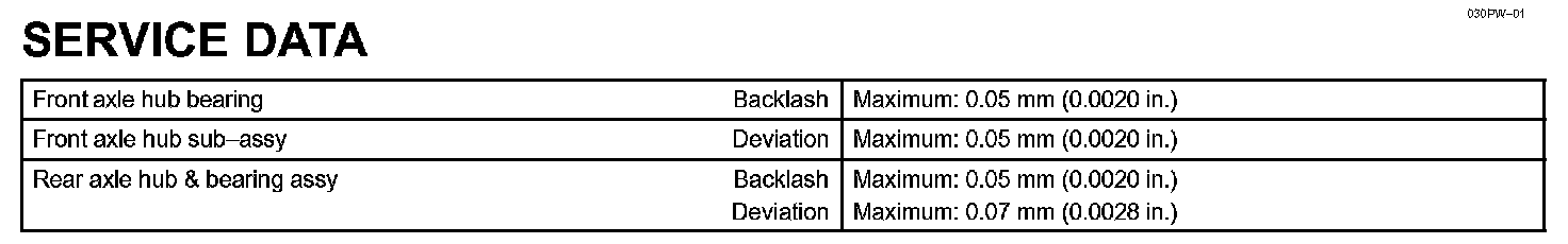 Drive Shaft/Propeller Shaft/Axle - Service Data: