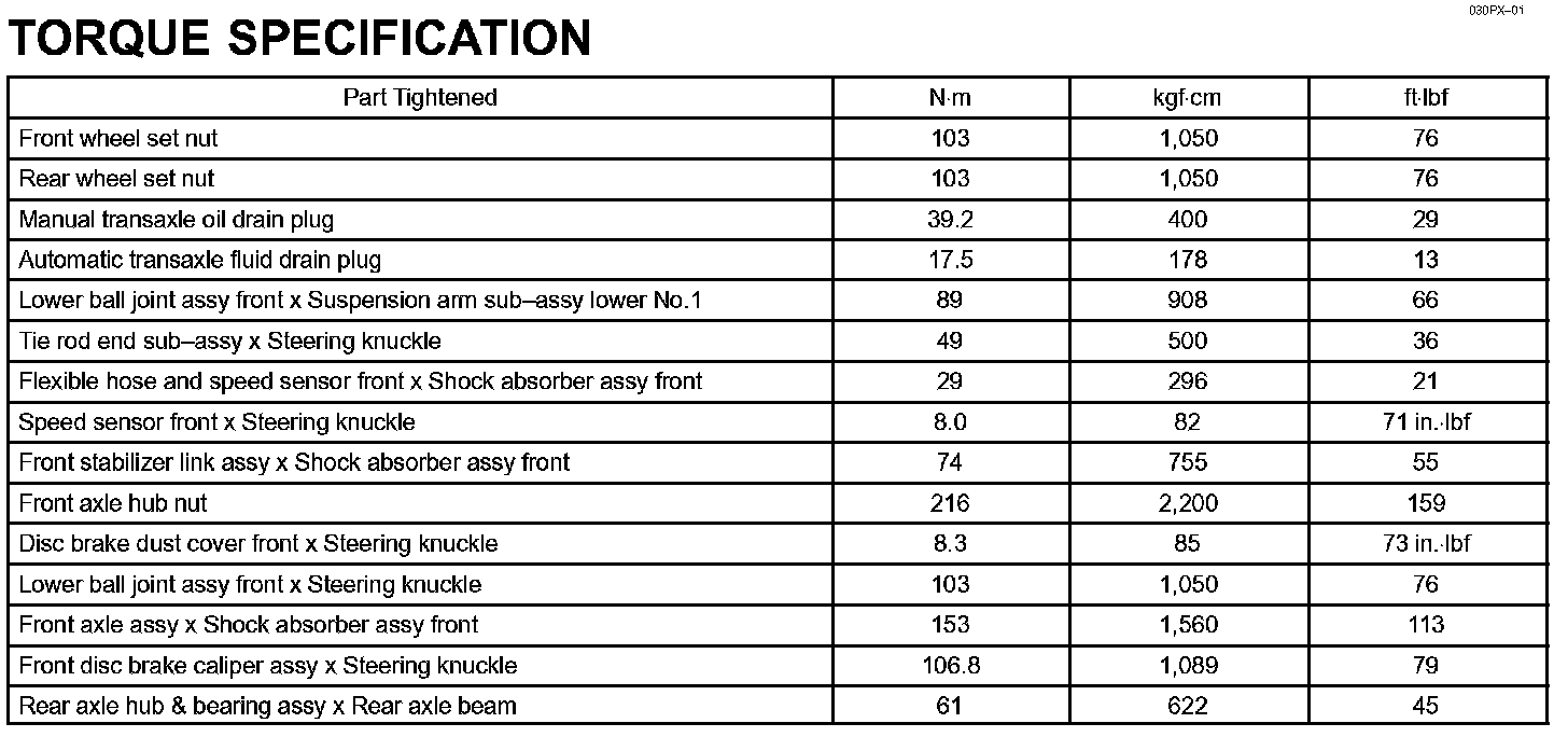 Drive Shaft/Propeller Shaft/Axle - Torque Specification: