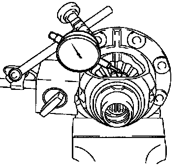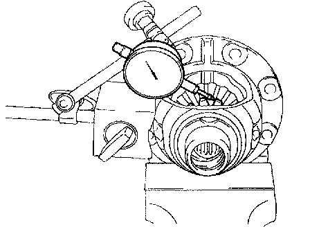 a. Fixing the front differential pinion to the front differential case side. Using a dial indicator, measure the front differential side gear backlash.