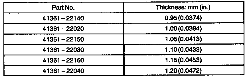 ^ Because the thrust washer does not have any identification mark, measure the front thickness with a micrometer to select a proper thrust washer.