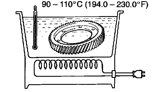 a. Using a heater, heat the front differential ring gear to 90 - 110°C (194.0 - 230.0°F)