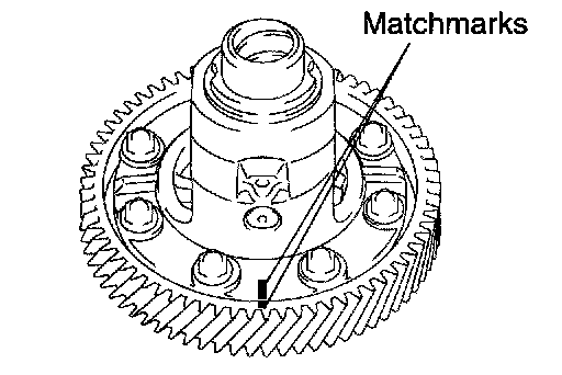 a. Place matchmarks on the front differential ring gear and front differential case.