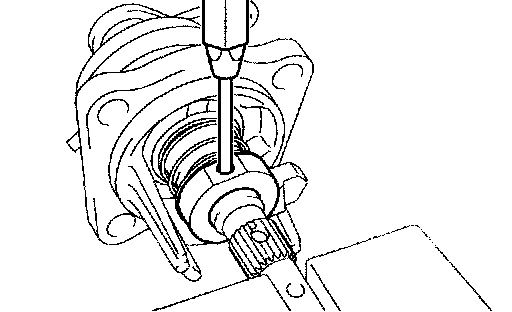 a. Using 2 screwdrivers and a hammer, tap out the snap ring.