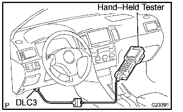 1. Connect the OBD II scan tool or hand-held tester to the DLC3.