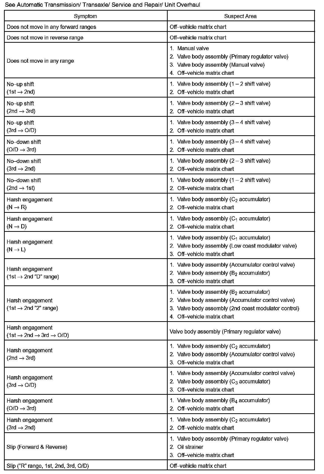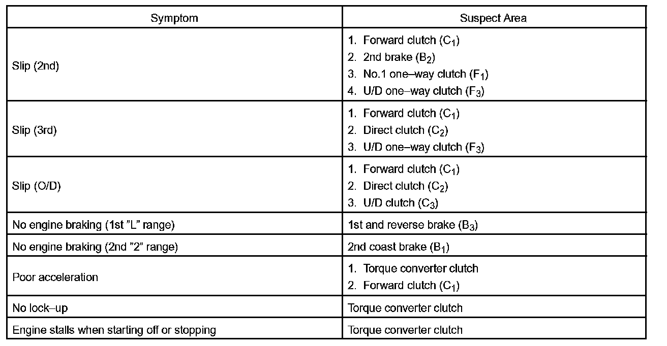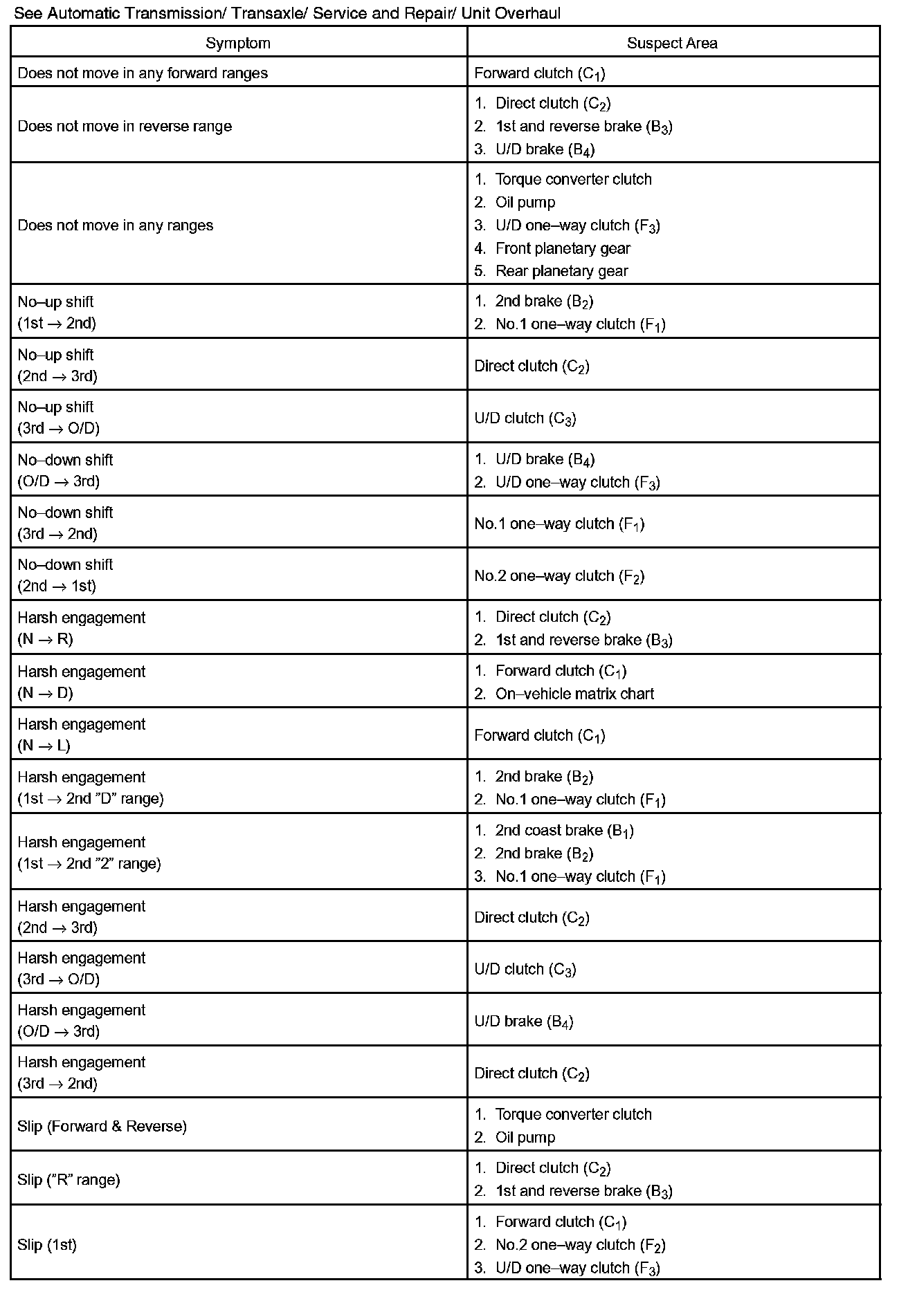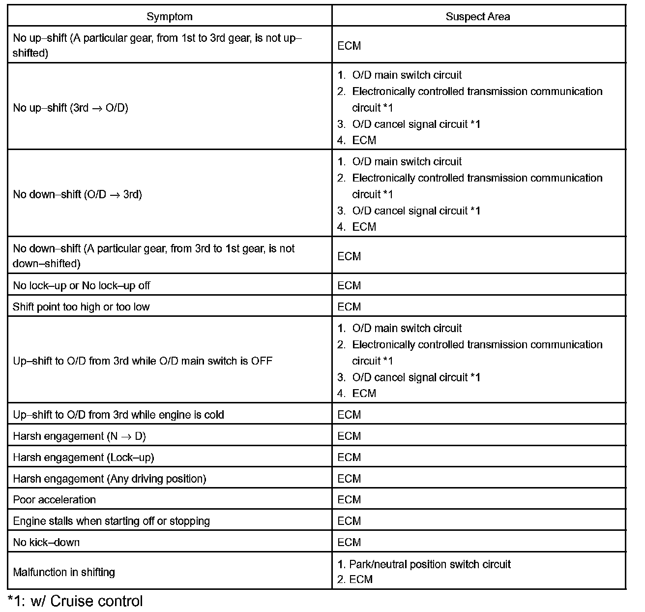 PROBLEM SYMPTOMS TABLEHINT: If a normal code is displayed during the DTC check but the trouble still occurs, check the circuits for each symptom in the order given in the charts and proceed to the relevant troubleshooting.