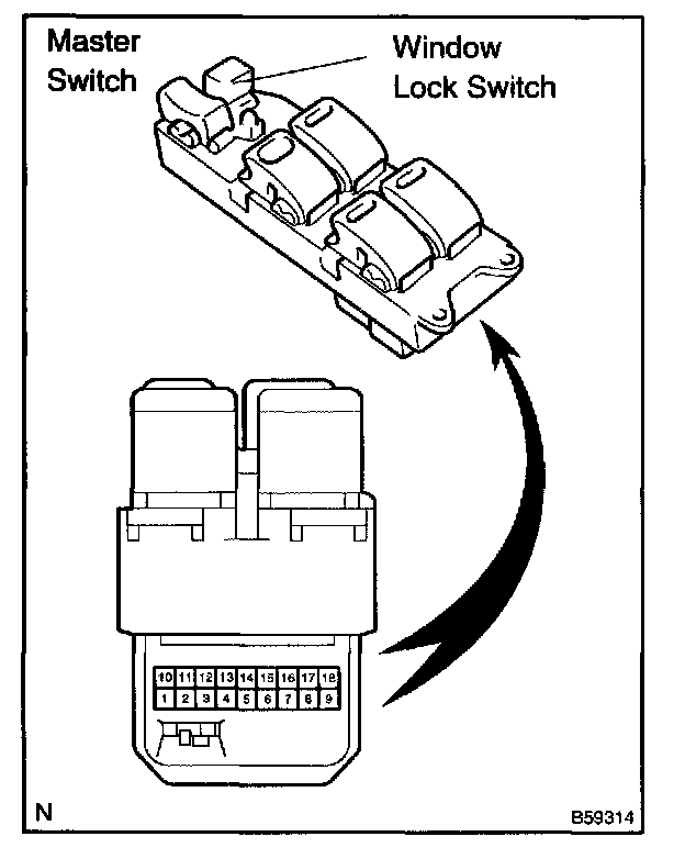 INSPECT POWER WINDOW REGULATOR MASTER SWITCH ASSEMBLY