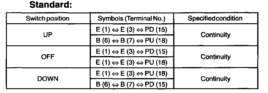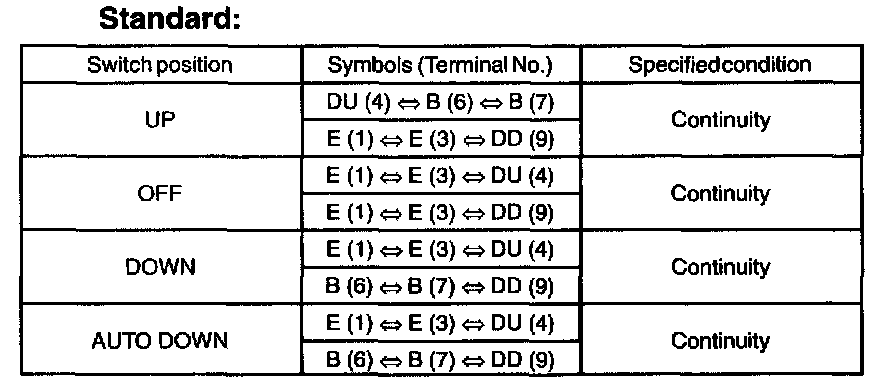 INSPECT POWER WINDOW REGULATOR SWITCH ASSEMBLY