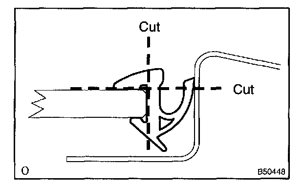 a. Using a knife, cutoff the moulding as shown in the illustration.