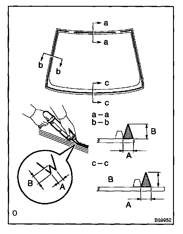 b. Hold the windshield glass in place securely with protective tape or equivalent until the adhesive has completely hardened.