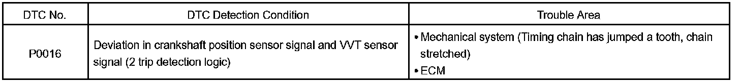 DTC P0016 Crankshaft Position - Camshaft Position Correlation (Bank 1 Sensor A)CIRCUIT DESCRIPTION