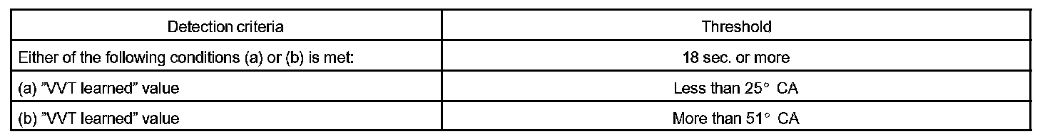 a. "VVT learning" value is less than 25° CA (Crankshaft Angle) or more than 51° CA.