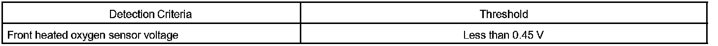 The ECM uses the heated oxygen sensor to optimize the air/fuel mixture in closed loop fuel control. This control helps decrease exhaust emissions by providing the catalyst with a nearly stoichiometric mixture. The sensor detects the oxygen level in the exhaust gas and the ECM uses this data to control the air-fuel ratio. The sensor output voltage ranges from 0 V to 1 V. If the signal voltage is less than 0.4 V, the air-fuel ratio is LEAN. If the signal voltage is more than 0.5 V, the air-fuel ratio is RICH. If the conditions for closed loop fuel control are met and after a specified time period, the sensor's output signal never indicates RICH, the ECM will conclude that closed loop fuel control is malfunctioning. The ECM will illuminate the MIL and a DTC is set.
