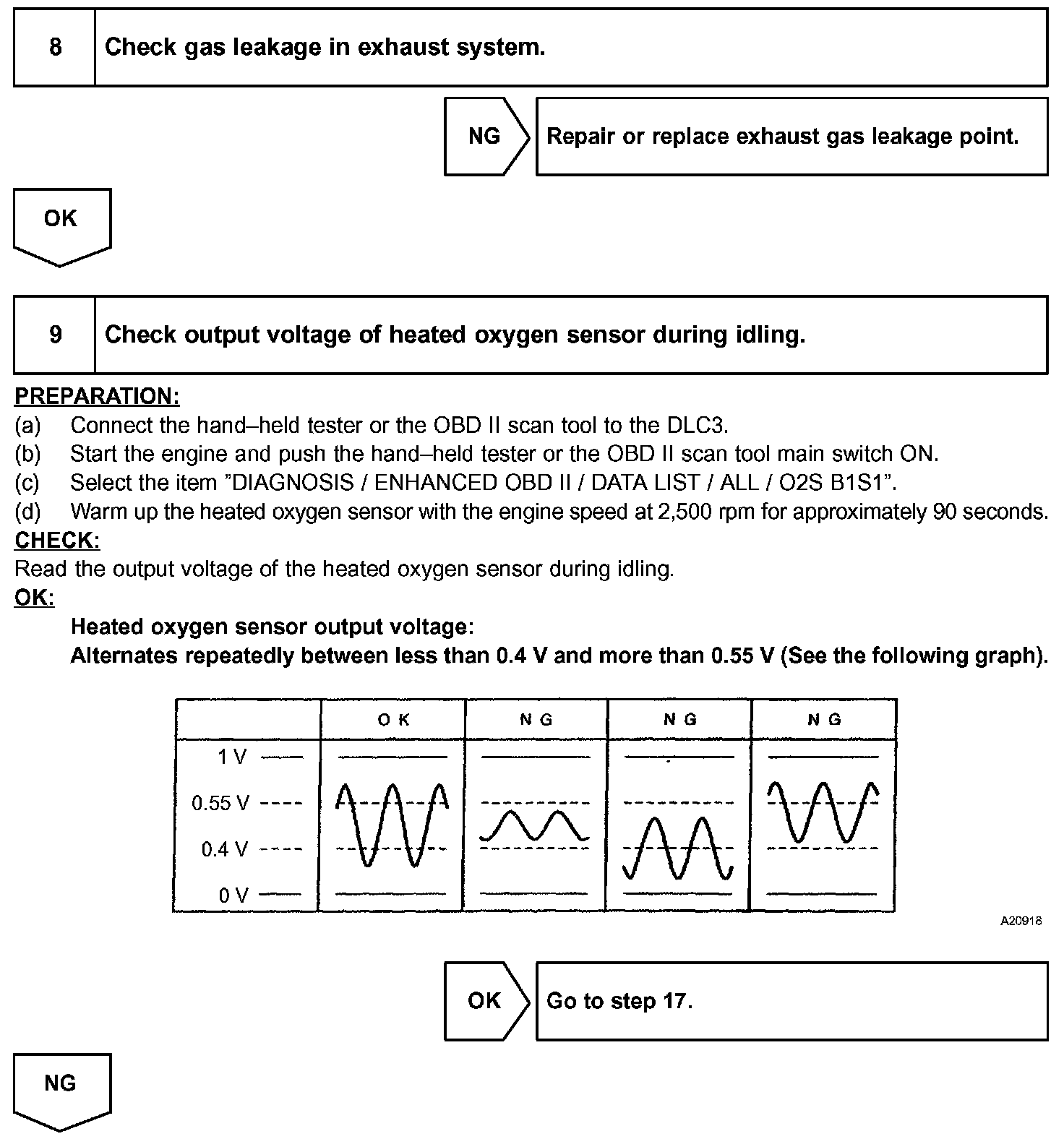 e. Let the engine idle for 20 sec. or more. Perform steps (d) and (e) at least 3 times.