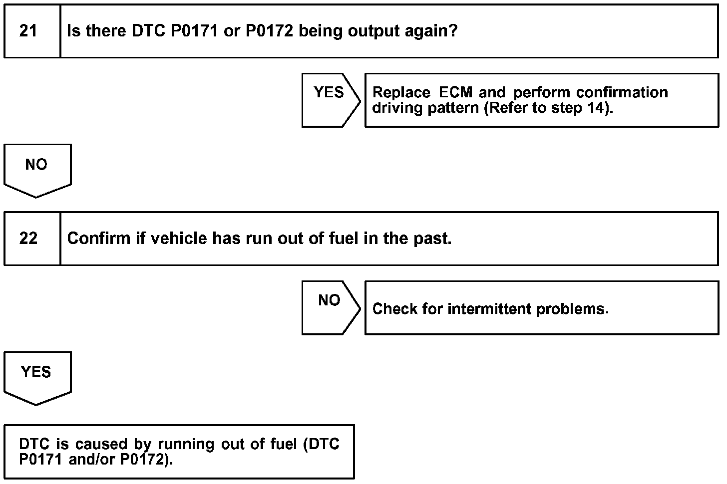 - If the vehicle runs out of fuel, the air-fuel ratio is LEAN and DTC "P0171" may be recorded. The MIL then comes on.