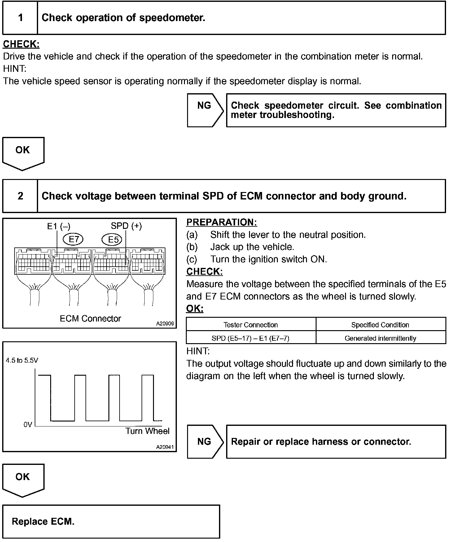 The ECM determines the vehicle speed based on the frequency of these pulse signals.