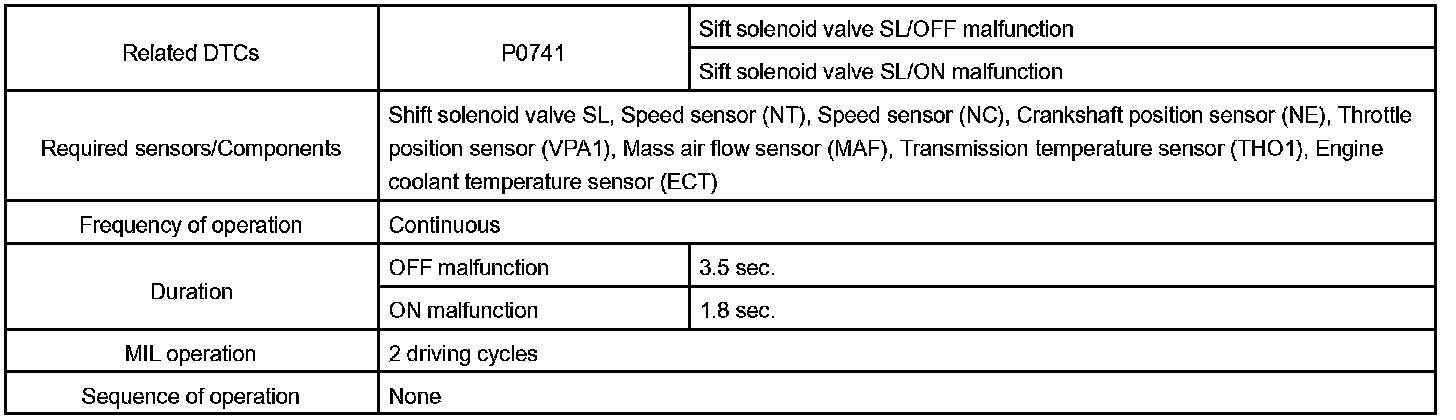 DTC P0741 Torque Converter Clutch Solenoid Performance (Shift Solenoid Valve SL)SYSTEM DESCRIPTION