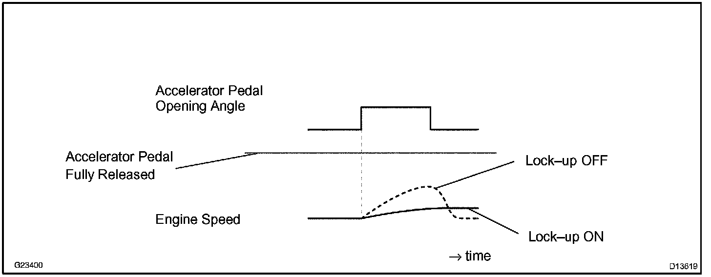 - Slowly release, but not fully, the accelerator pedal in order to decelerate. (Fully releasing the pedal will close the throttle valve and lock-up may be turned off.)