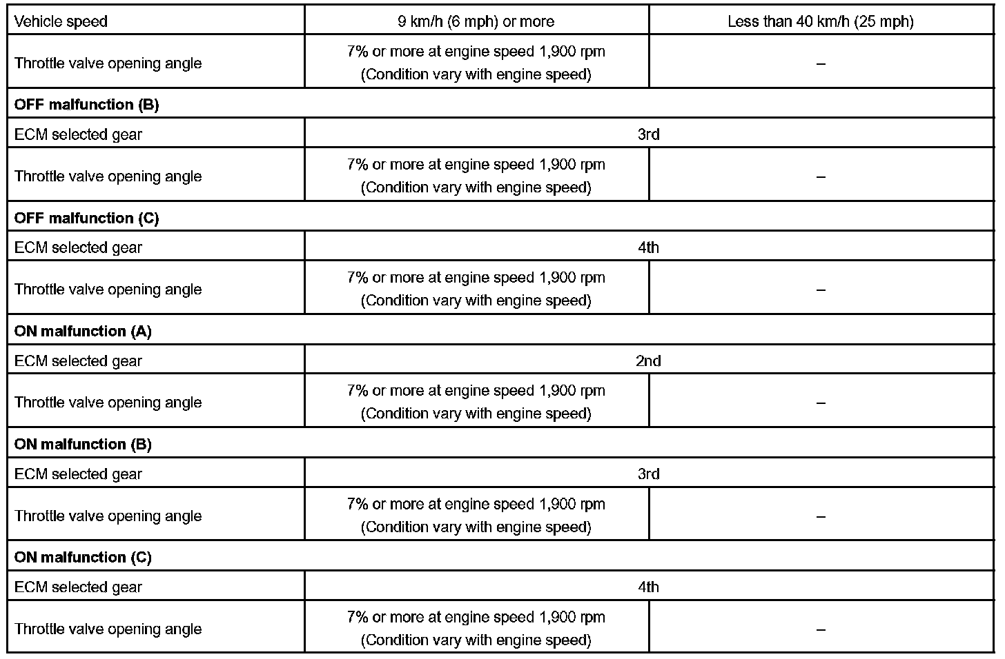 Then the ECM compares the actual gear with the shift schedule in the ECM memory to detect mechanical trouble of the shift solenoid valves and valve body.