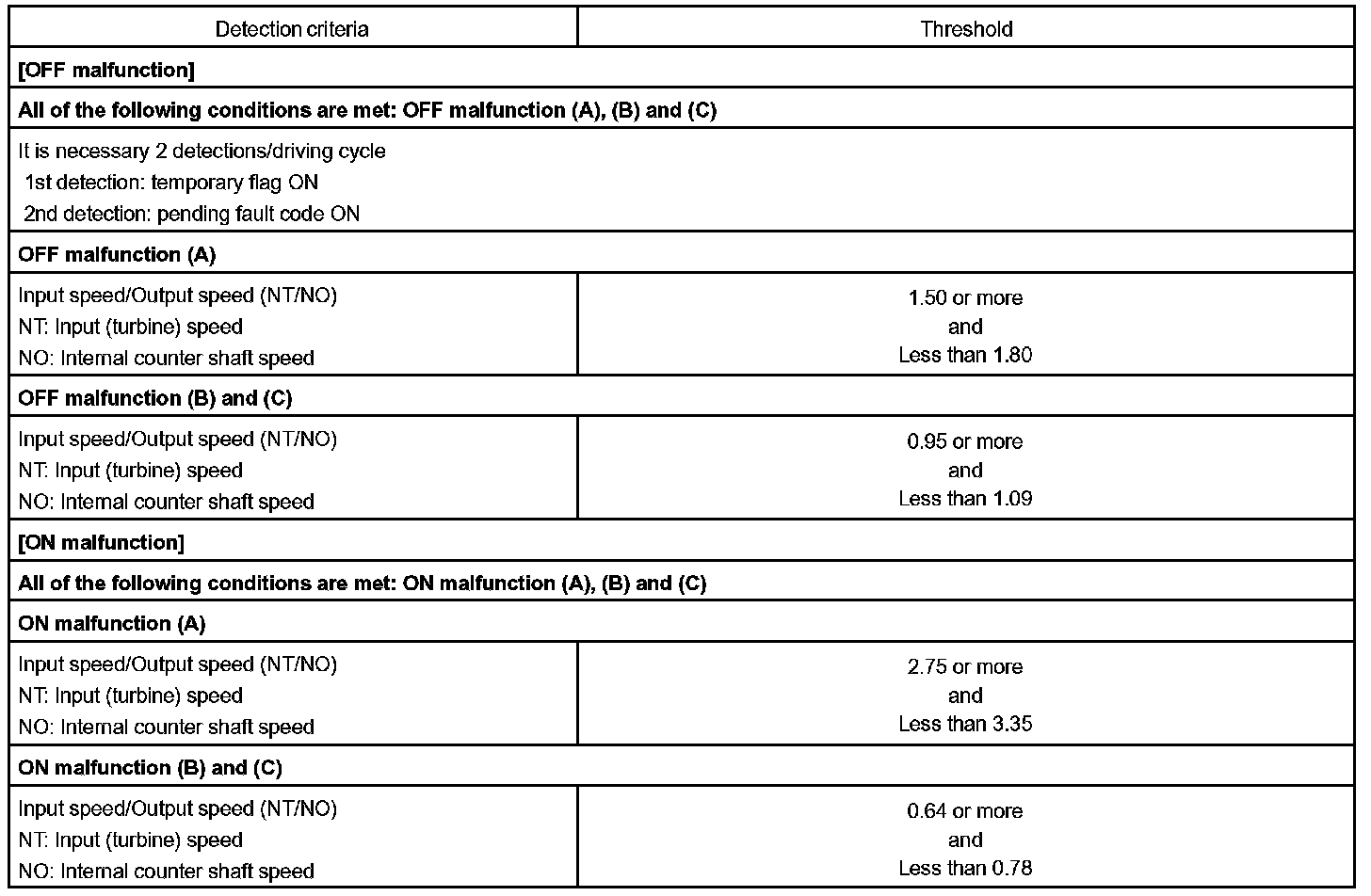 Typical Malfunction Thresholds: