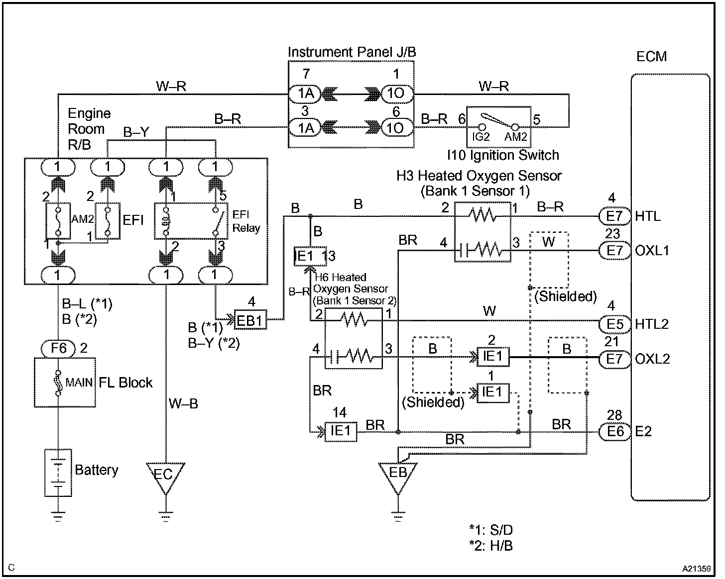 - Sensor 1 refers to the sensor closest to the engine body.