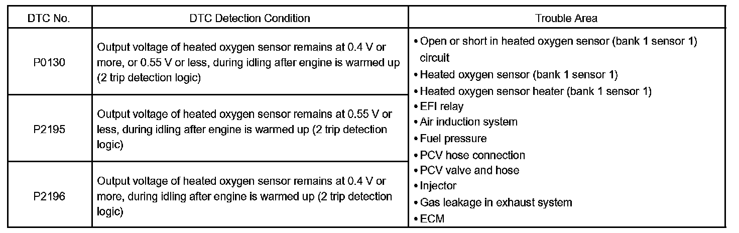 DTC P2196 Oxygen Sensor Signal Stuck Rich (Bank 1 Sensor 1)CIRCUIT DESCRIPTION