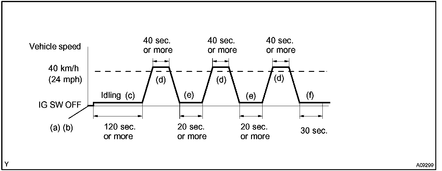 d. Drive the vehicle at 40 km/h (24 mph) or more for 40 sec. or more.